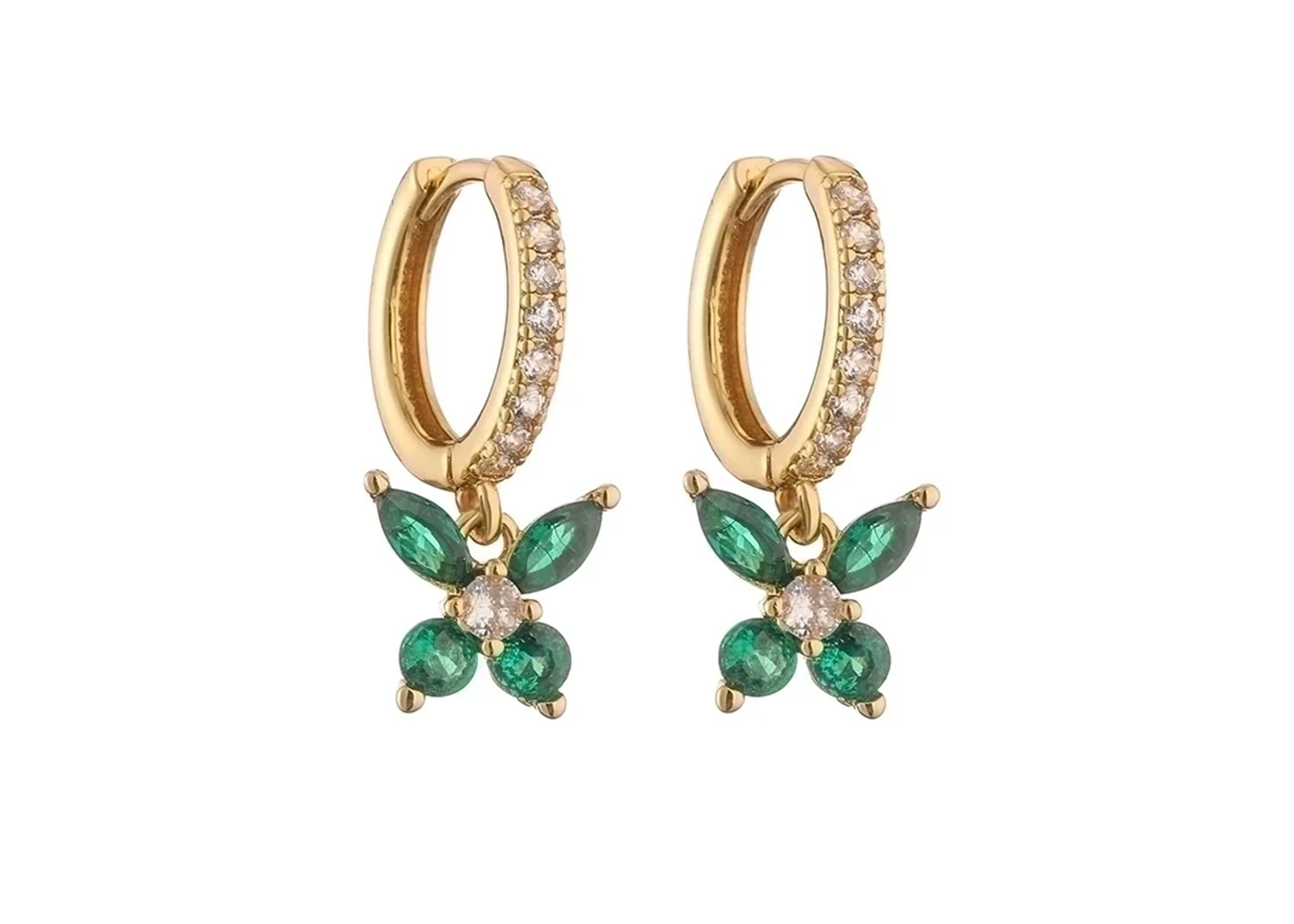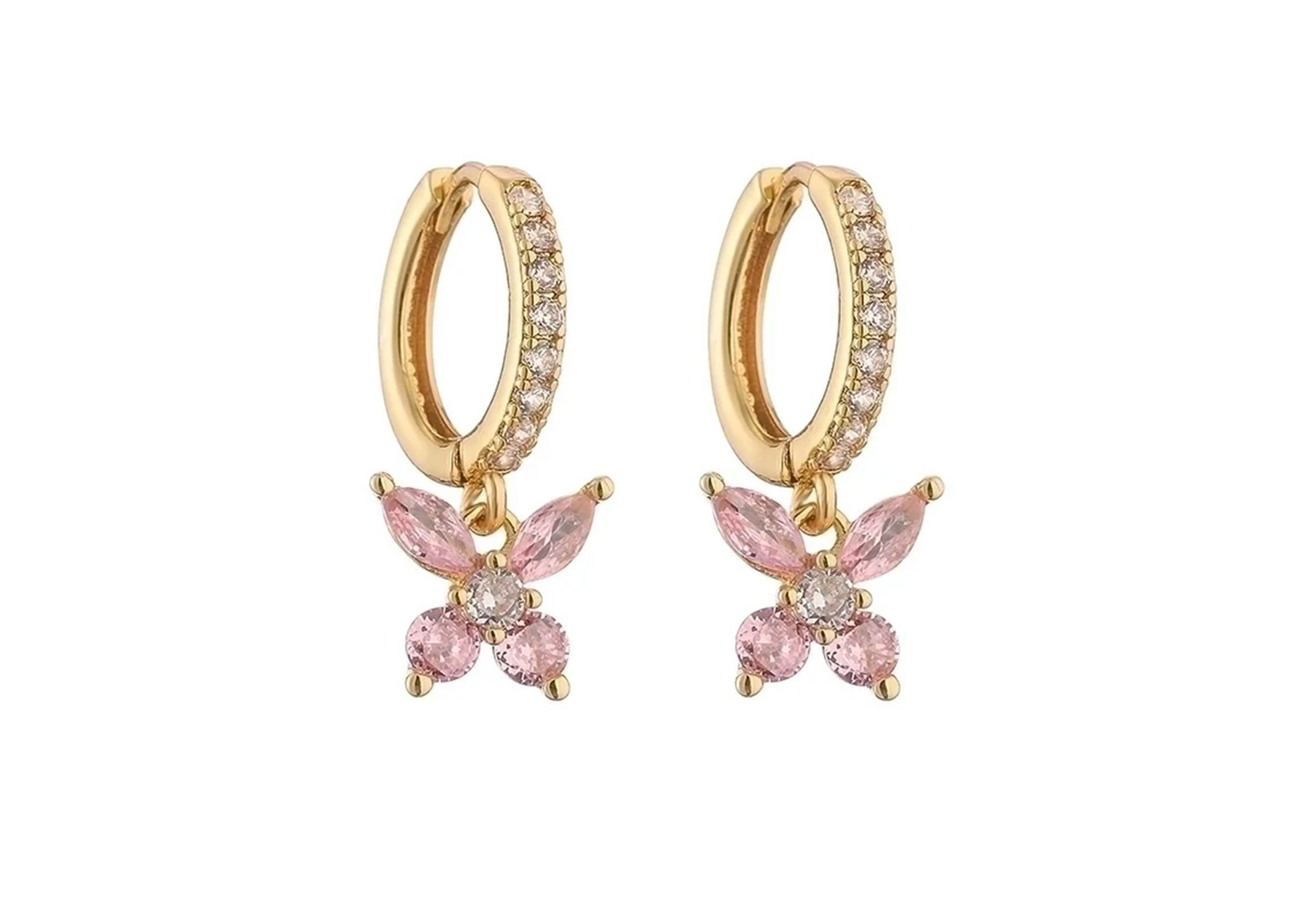 These 18K gold-plated copper earrings feature a delicate butterfly design with sparkling zircon details. Their elegant drop style suits both casual and formal wear, adding a refined touch to any outfit.